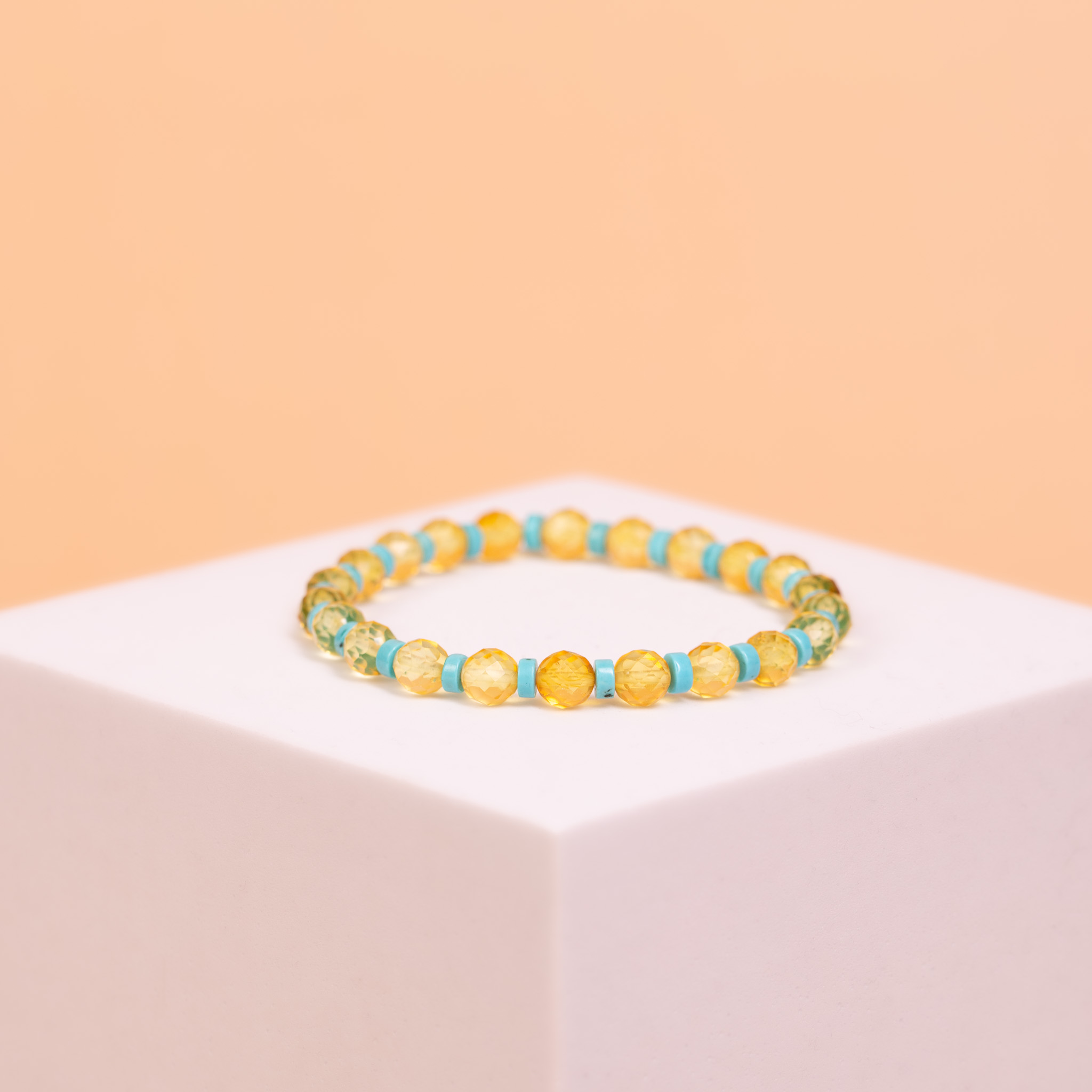 Subtelna bransoletka wykonana z naturalnego bursztynu bałtyckiego. Kulki o fasetowym szlifie efektownie mienią się w świetle, nadając biżuterii nowoczesnego blasku. To minimalistyczny dodatek, który łączy naturalną energię bałtyckiego skarbu z prostą, elegancką formą.