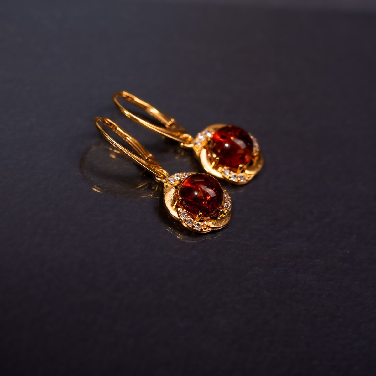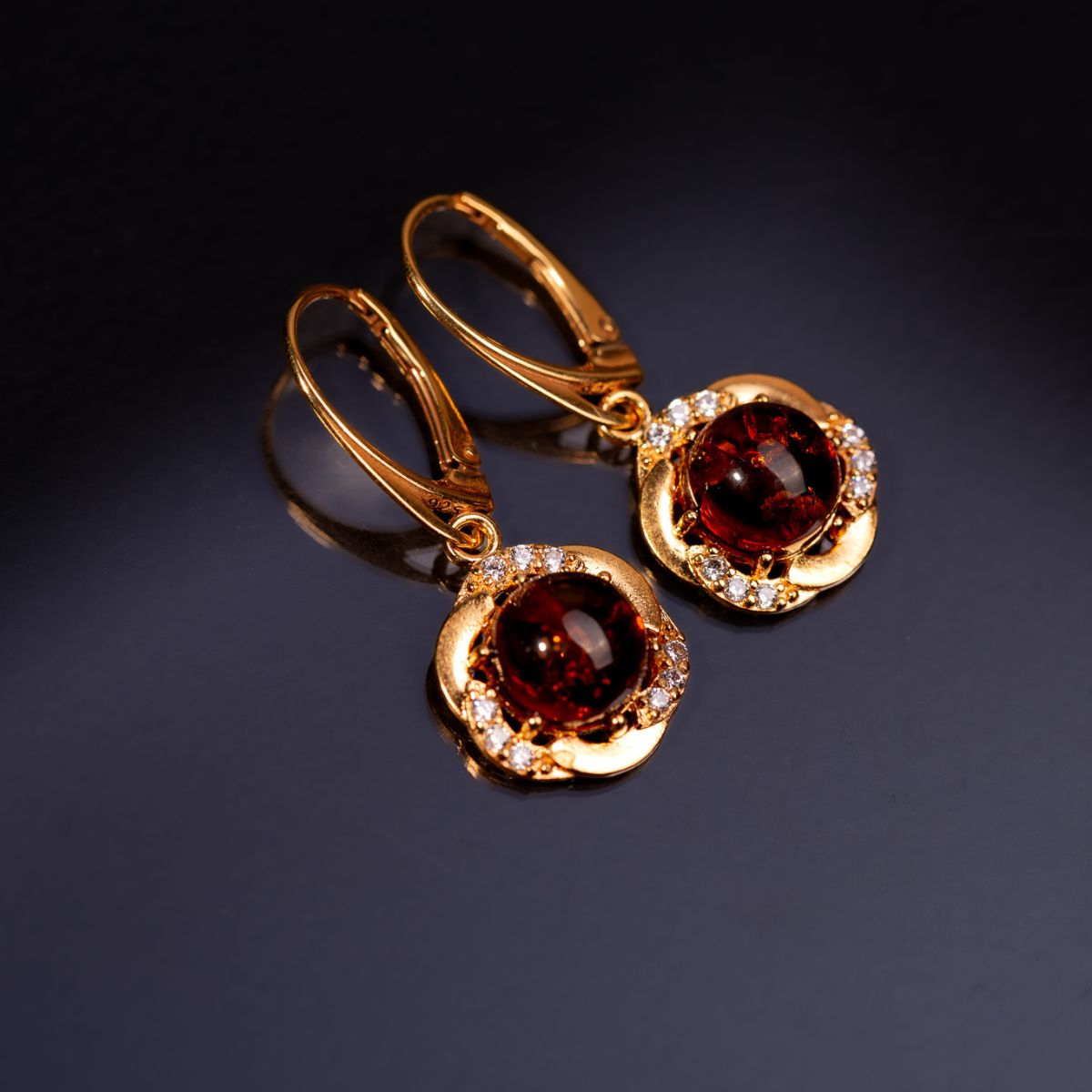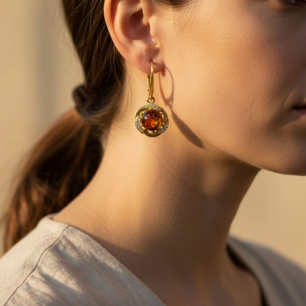 Delikatne kolczyki o kwiatowej formie, w których ciepły bursztyn koniakowy otoczony został subtelnym blaskiem drobnych cyrkonii. Złocona oprawa nadaje im elegancji i lekkości, sprawiając, że są idealnym wyborem zarówno do codziennych stylizacji, jak i na wyjątkowe okazje.