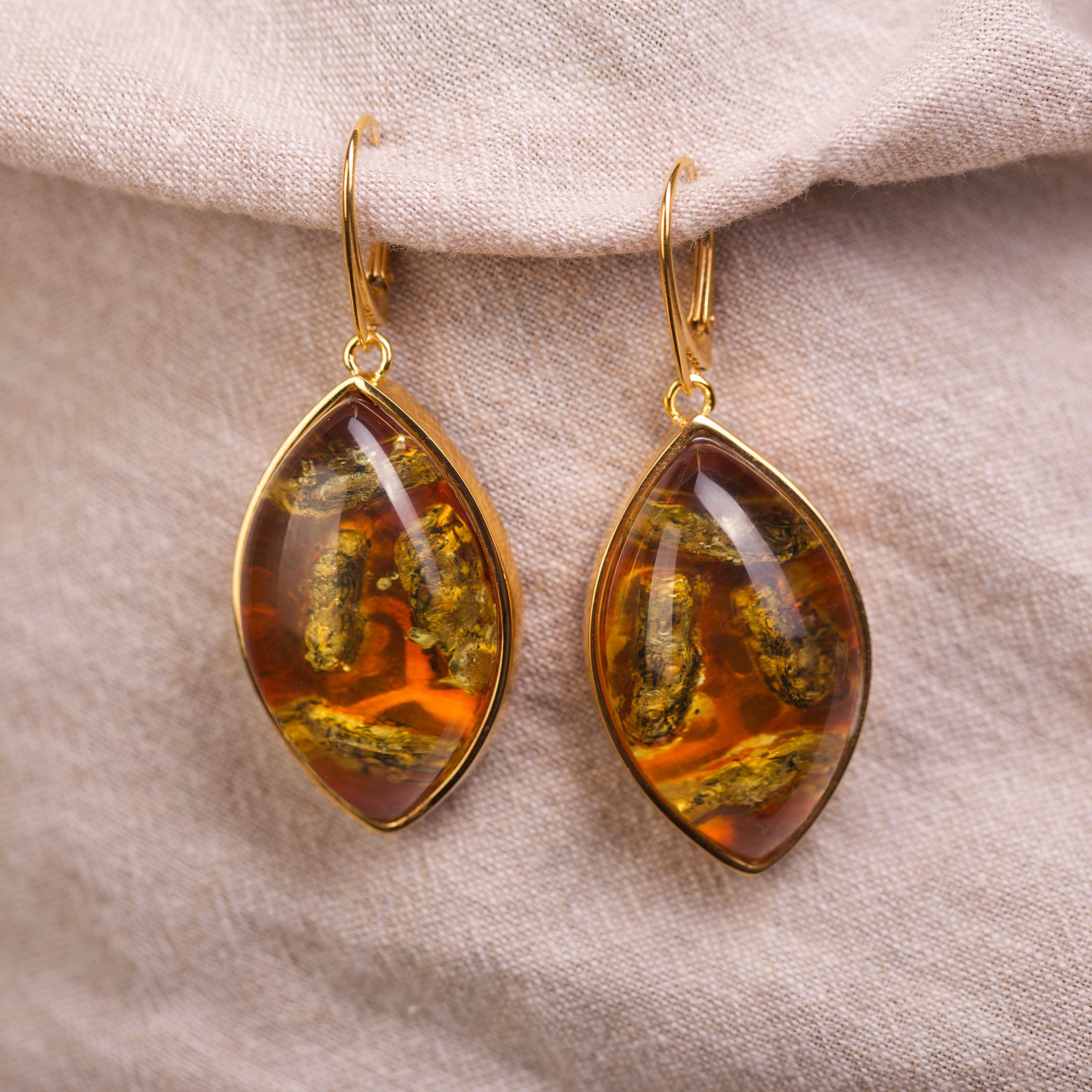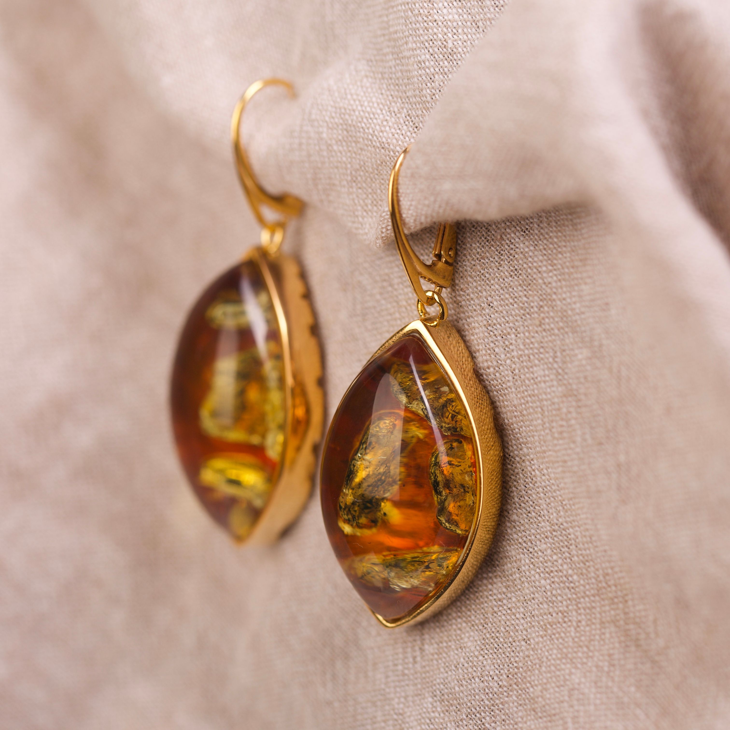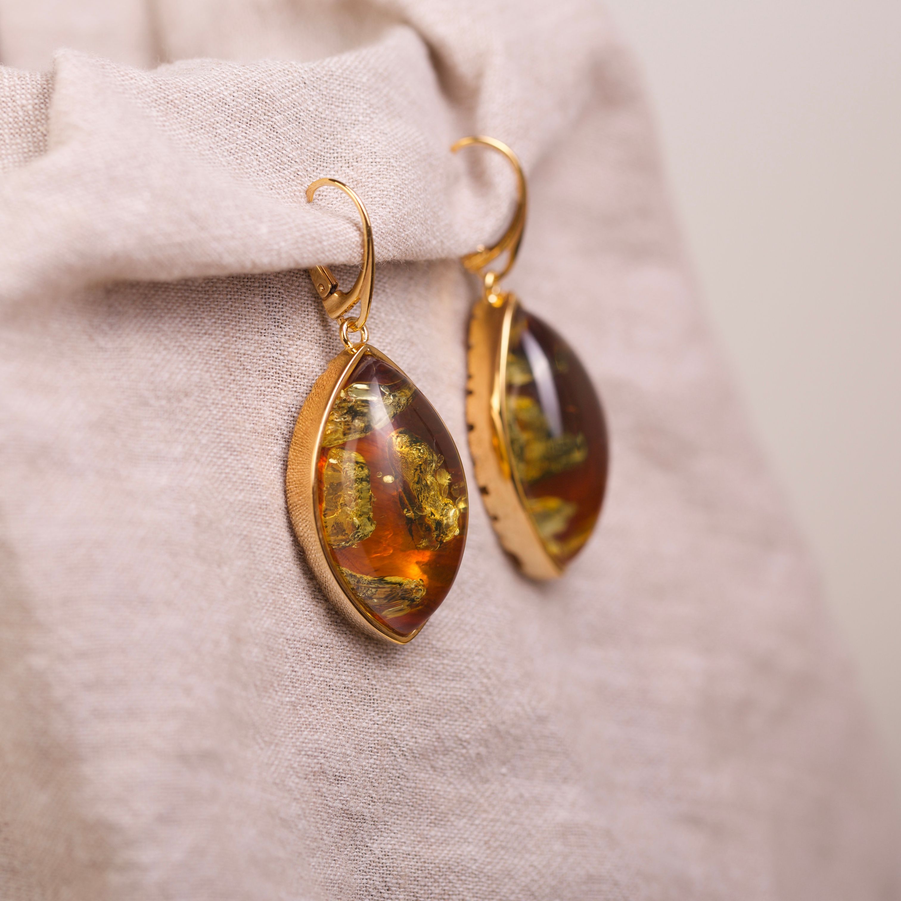 Kolczyki z linii Catherina to biżuteria, która od razu dodaje stylizacji klasy. Ciepły bursztyn bałtycki w złoconej srebrnej oprawie pięknie rozświetla okolice twarzy i podkreśla kolor skóry. Smukły kształt optycznie wysmukla szyję, a przy każdym ruchu kolczyki delikatnie się kołyszą, przyciągając wzrok. Dobrze wyglądają zarówno z prostą koszulą, jak i z wieczorową sukienką – jeden mocny akcent, a całość od razu wygląda bardziej „dopieszczona”.