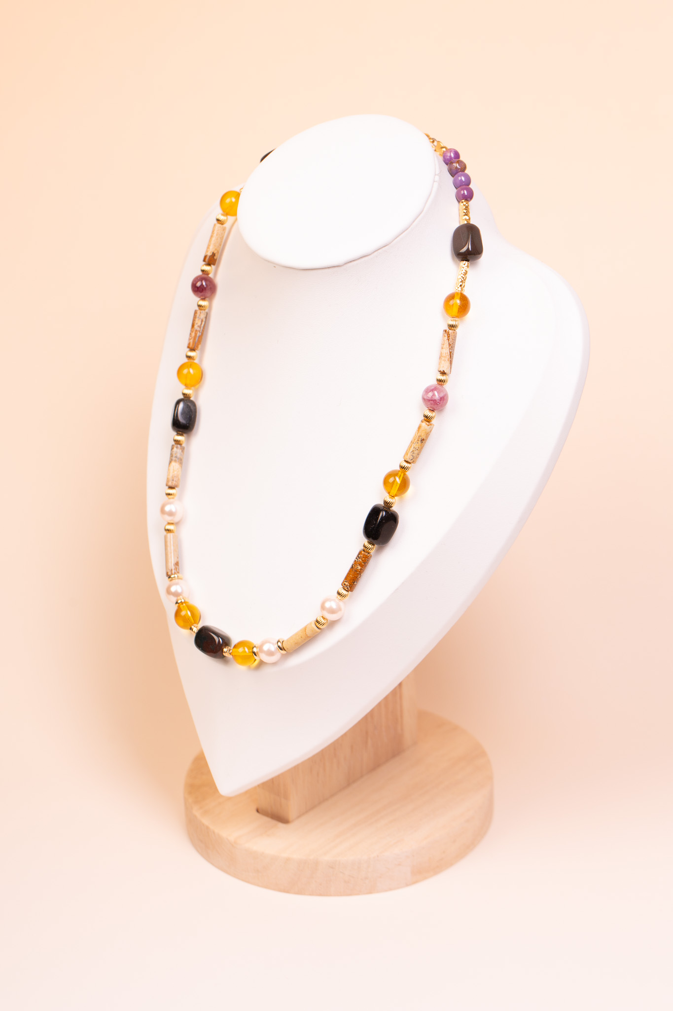 Naszyjnik ręcznie wykonany z naturalnymi kamieniami i bursztynem bałtyckim