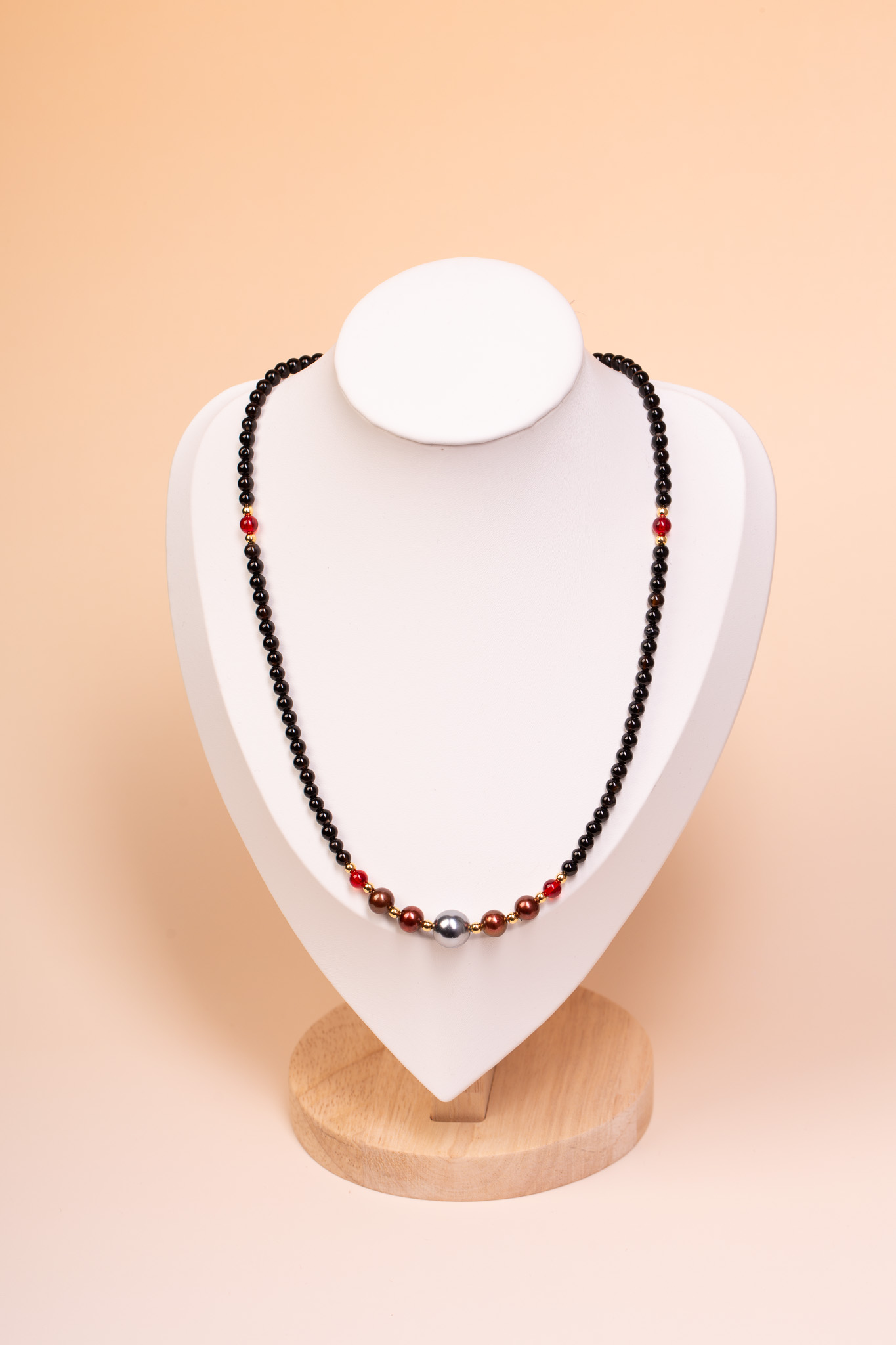 Naszyjnik ręcznie wykonany z naturalnymi kamieniami, perłami i bursztynem bałtyckim barwionym