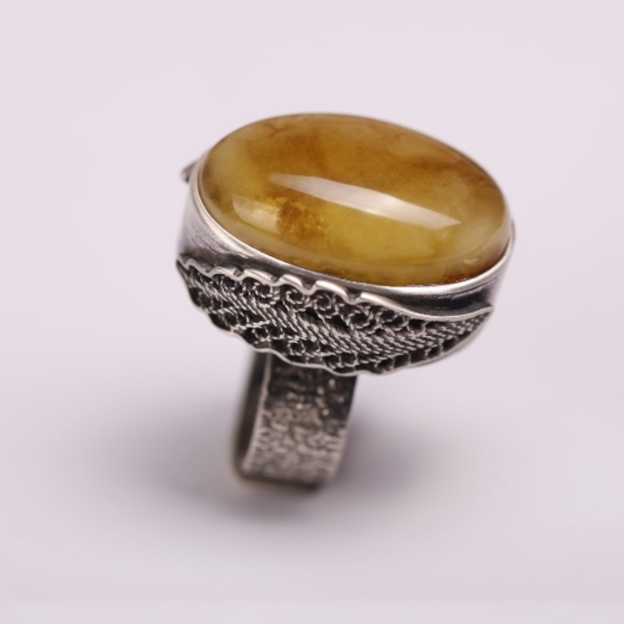 Ręcznie wykonany pierścionek „Miodowy Owal”