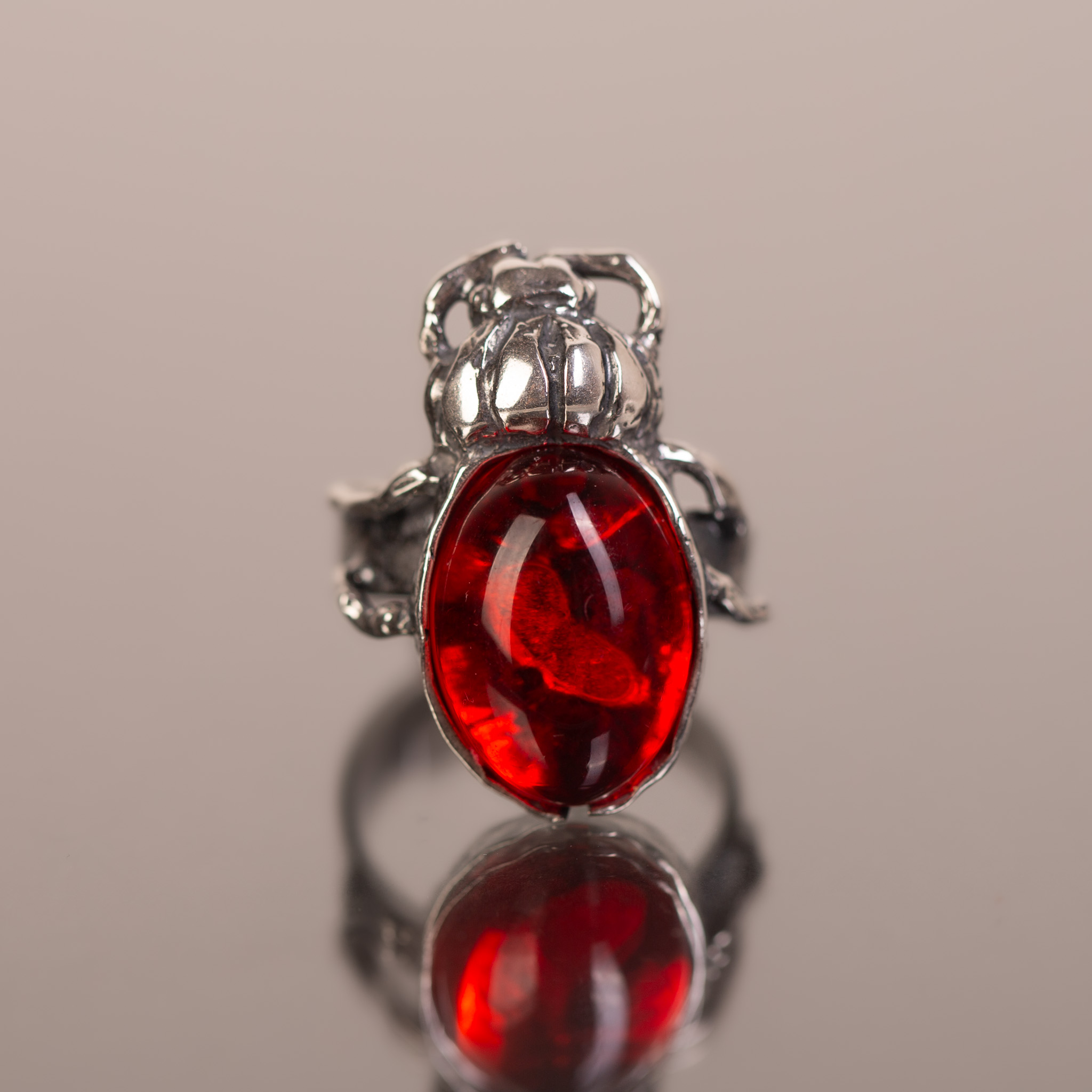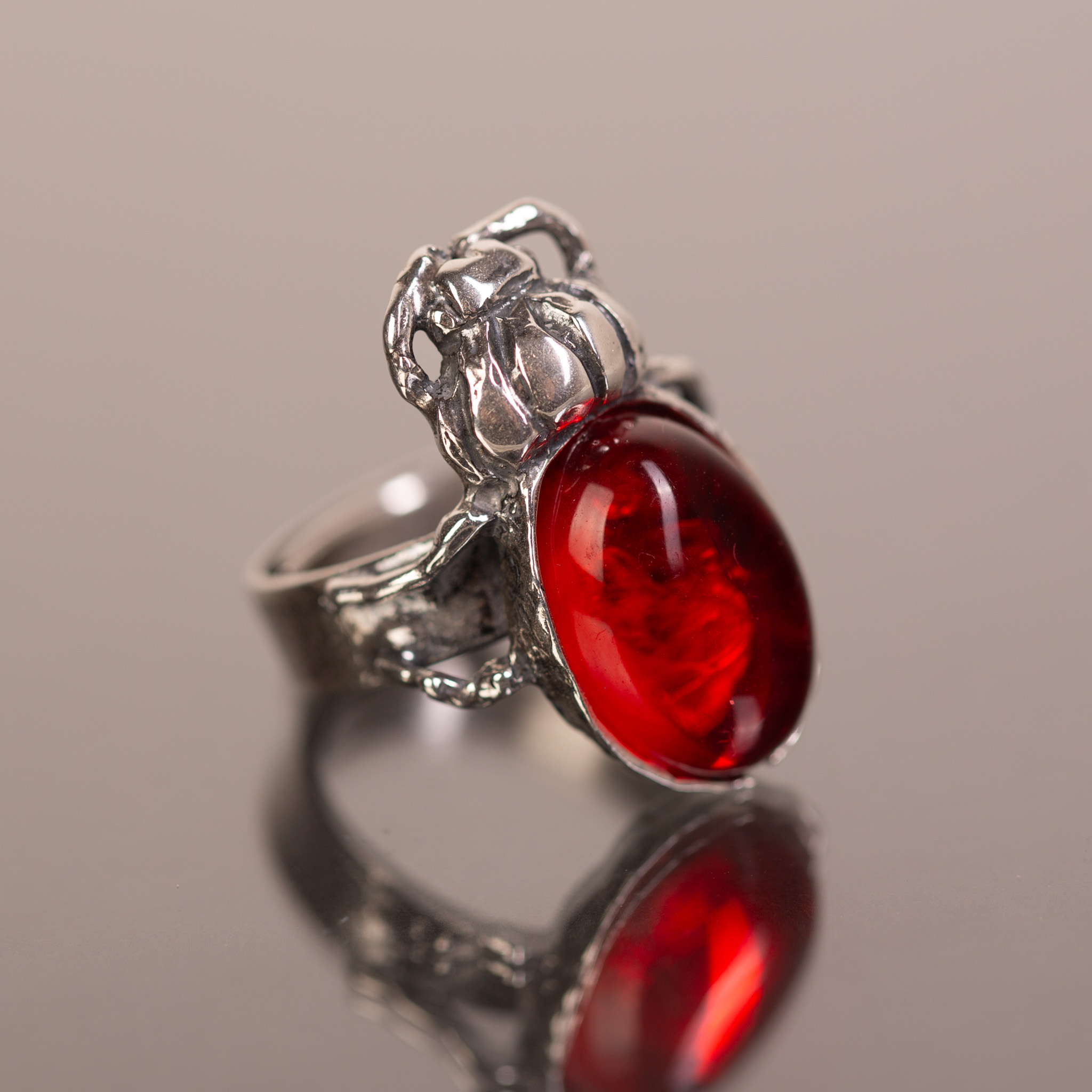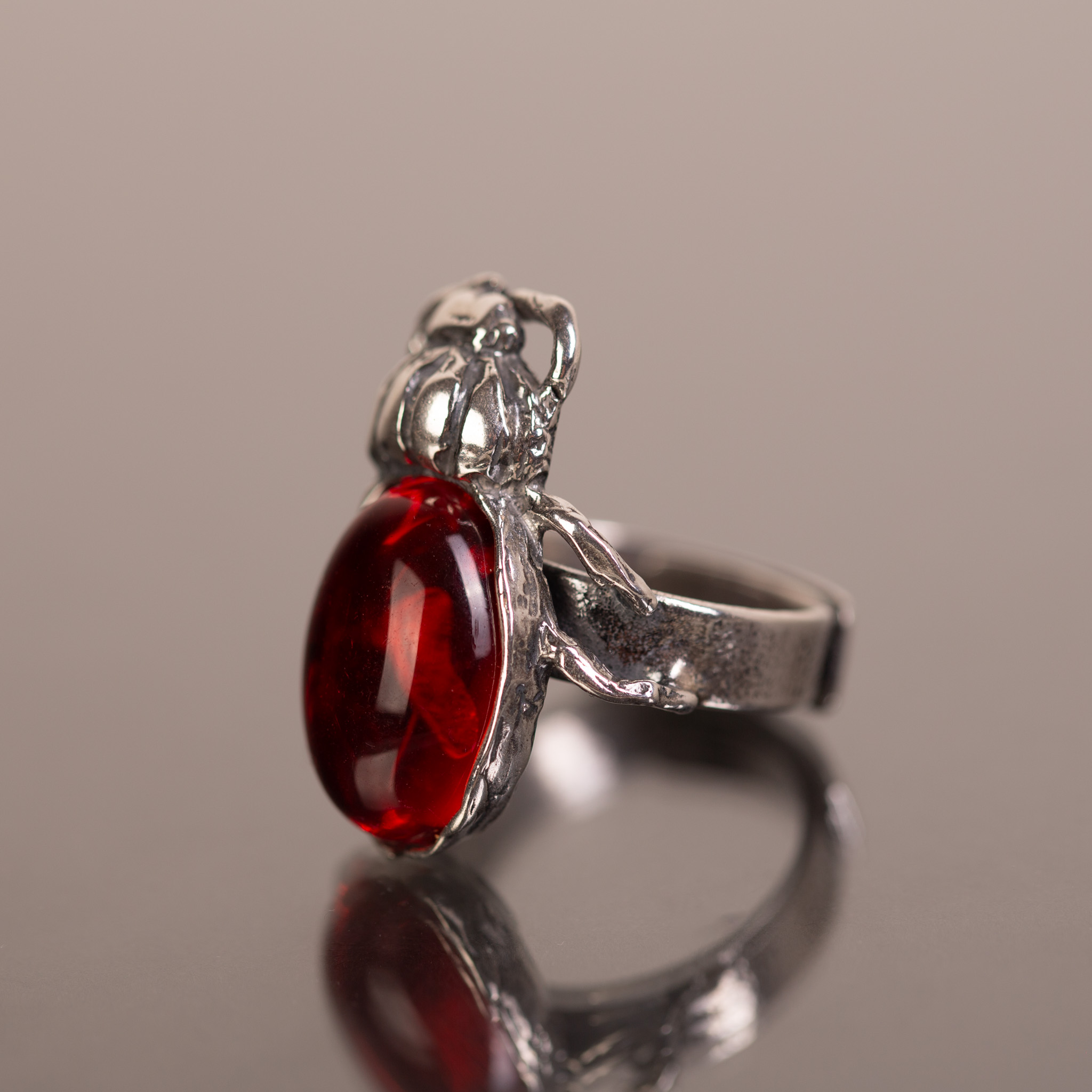 Ręcznie wykonany pierścionek „Rubinowy Żuk”