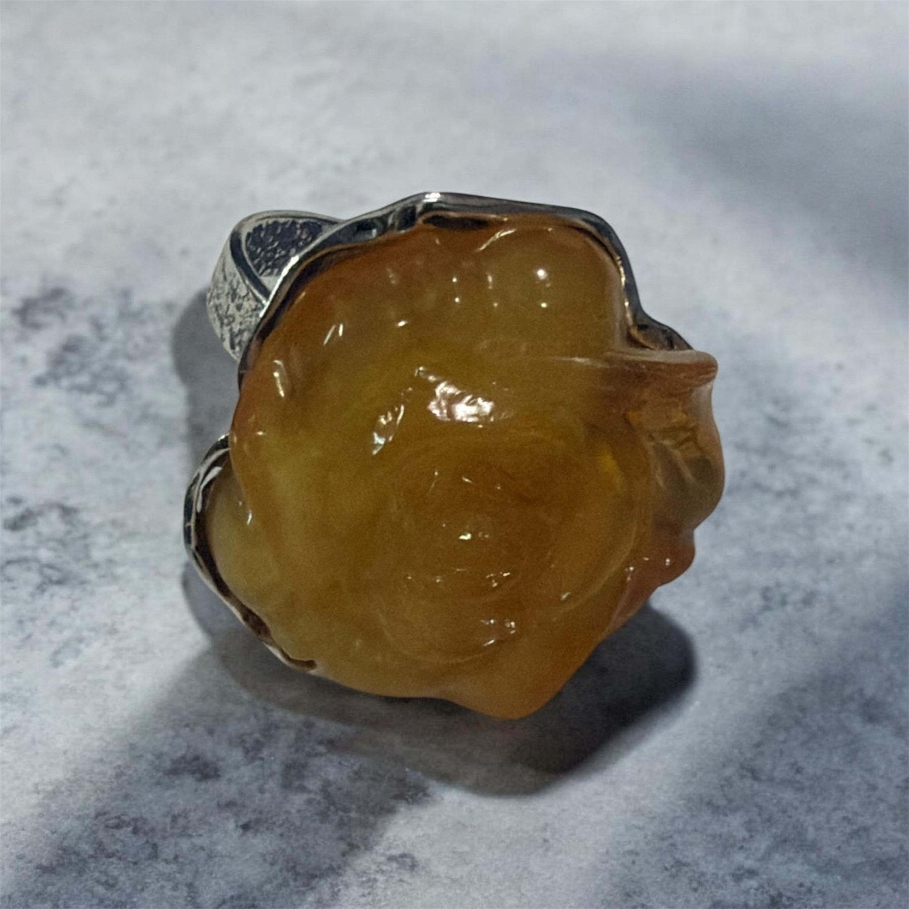 Pierścionek srebrny z rzeźbioną różą, ręcznie wykonany na zamówienie